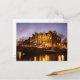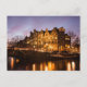 Postcard der Amsterdamer Kanalhäuser im traditionellen Stil neben einer Brücke über die Prinsengracht und die Brouwersgracht Kanäle beleuchtet bei Dämmerung während der Blue Hour in den Niederlanden.