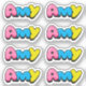 Der Name Amy in bunten Bublegum-Schrift.
