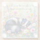 A sweet coaster featuring an adorable sleepy skunk napping in a bed of pink and yellow flowers. A quote that says, ""Rest is the silent reset that lets the mind bloom again."