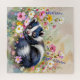 A sweet puzzle featuring an adorable sleepy skunk napping in a bed of pink and yellow flowers.