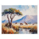 A striking poster of an African landscape bathed in golden light, featuring elegant giraffes grazing beneath acacia trees. The warm hues of sunset melt into the horizon, evoking the beauty and serenity of the savanna — a timeless celebration of nature and wildlife.