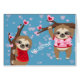 Zwei bezaubernde kleine Schluchten sind in ihrer Kleidung zum Valentinstag gekleidet, während sie auf mit rosa Herzen dekorierte Baumgummis klettern. Die Bilder werden auf einem himmelblauen Hintergrund mit schwimmenden Herzen platziert. Im weißen Text steht "Valentine". Das Innere der Karte weist das gleiche Hintergrundmuster mit zwei benutzerdefinierten Textfeldern auf.