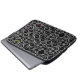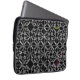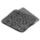 Ein kompliziertes Muster grauer Kreuze und Kreise, die sich auf einem schwarzen Hintergrund mit einem kleinen Farbtupfer verbinden.