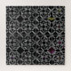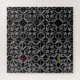 Ein kompliziertes Muster grauer Kreuze und Kreise, die sich auf einem schwarzen Hintergrund mit einem kleinen Farbtupfer verbinden.