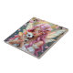 A pretty pink and gold anime elven fairy holding her cute white baby dragon ceramic tile.