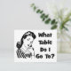 Hier ist ein lustiges Retro-Grafik-Design, dass eine Frau über die Frage "Was Tisch gehe ich gehen?. Dieses Design funktioniert gut für Bunco Gruppen, Kellner, Kellnerinnen, Restaurants, Bars oder einfach nur zum Spaß.
