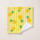 Auf einem gelben und weißen gestreiften Hintergrund.
