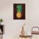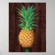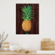Poster in einer digitalen Abbildung einer Ananas, basierend auf Vintager botanischer Kunst, vor dem Hintergrund einer Mahagoni-Wand