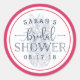 Personalisierte Brautparty-Aufkleber passen zu unserer schicken Pink & Navy Ananas Kollektion und sind mit einem hellrosa Rahmen, Ananas Silhouette Illustration und dem Ehrengast und Duschdatum in klassisch marineblau.