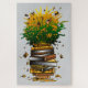 Dieses spielerische und lebendige Grafikdesign zeichnet sich durch einen Stapel gelber Bücher aus, die in Form einer Ananas angeordnet sind. Die Bücher sind wild gestapelt, aber das oberste Buch platzt mit Energie und löst einen Berst von Grün- und Gelbsaft aus, der nach außen spritzt. Kleine Bücher tauchen aus der Saftblase heraus und sorgen für Bewegung und Spaß. Die gesamte Komposition imitiert geschickt das Aussehen einer Ananas und vermischt die Liebe zum Lesen mit dem tropischen Charme dieser ikonischen Frucht. Es ist ein perfektes Design für Buchliebhaber mit einem kreativen Flair für das Knebel!