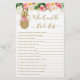 Diese bezaubernden wer die Bride Best Cards kennt, sind ein lustiges Brautparty. Geben Sie sie einfach während des Brautparty weiter, wo die Gäste Spaß haben, Fragen über die Braut zu beantworten! Die Person mit den korrektesten Gewinnen! Das Design umfasst sommerliche tropische Aquarellfarben Blume mit Imitaten Gold Glitzer Konfetti und ein Imitat Gold Glitzer Ananas. Die Koordination der Goldkalligraphie ergänzt das hübsche Blumendesign.