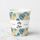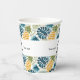 Ein stilvolles Muster für Frühling und Sommer. Goldene Ananas auf blauen und grünen Palmen Blätter Blattmuster. Weißer Hintergrund. Personalisieren und hinzufügen Sie Ihr Unternehmen, Firmenlogo und Text.