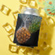 Foto eines Ananas, das auf schwarzem Hintergrund in Wasser fiel.