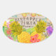 Ananas mit Blumen Ovaler Aufkleber