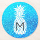 Ananas-Monogramm auf Imitat-blauer Glitzer Runder Pappuntersetzer