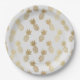 Ein tropisches Muster von Ananas, bedeckt mit einer glänzenden Goldstruktur. Die Ananas sind auf einem sehr hellgrauen Hintergrund angeordnet. Sie werden mit einer Mosaiktechnik gezeichnet, die einen modernen Look ermöglicht. Dieses Bild hat alle Gefühle eines tropischen Resorts, aber das subtile Golden Look verleiht ihm ein elegantes und elegantes Ambiente.