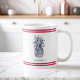 Preppy chic Tasse in lebhaftem Rosa und Marine verfügt über gestreifte Bänder in leuchtend fuchsienrosa oben und unten, mit einer Vintagen Stil Ananas-Abbildung und Ihrem Namen oder Ihrer Wahl der Personalisierung in klassisch marineblau.