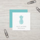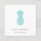 Elegante quadratische Visitenkarten mit einer tropisch türkisfarbenen Ananas-Abbildung auf einem knusprigen weißen Hintergrund mit zwei Textzeilen. Fügen Sie Ihre Kontaktinformationen auf der Rückseite hinzu. Beinhaltet drei soziale Medien-Icons und ein Feld für Ihren Benutzernamen in Weiß, auf dem Robin's Eigelb übereinstimmt.