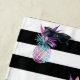 Tropisches Badetuch mit Ananas an schwarz-weißen Streifen.