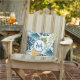 Eine große, goldene Ananas mit tropischer Vegetation, die auf einer blauen und grünen Palme steht, verlasse Blattmuster. Weißer Hintergrund. Ein blauer und weißer Rahmen mit Platz und Vorlagen für Ihren Namen und Monogramm-Buchstaben. Ideal für Ihren Innenhof, Garten, Garten oder den Pool!