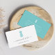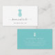 Das schicke, moderne Design besticht durch eine türkisfarbene Ananas-Illustration, das traditionelle Symbol der Gastfreundschaft auf einem knalligen weißen Hintergrund. Fügen Sie der Vorderseite zwei Zeilen benutzerdefinierten Text mit Ihrem Namen oder Firmennamen in schicken handgeschriebenen Skripten hinzu, und passen Sie den Rücken mit Ihren vollständigen Kontaktdaten unter einer kleineren Ananas-Abbildung in Weiß an passender Robinblauer an. Ideal für professionelle Gastgewerbe, Köche, Caterer, Innenarchitekten oder jeden Beruf.
