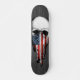 Cooler Schädelentwurf Skateboard gemacht für alle Skaterjungen und -mädchen. Perfektes Geschenk für jeden Skater. Skate mit Art mit diesem patriotischen Schädel. Dunkle hölzerne Beschaffenheit mit einem fantastischen Schädel und amerikanische Flagge entwerfen.