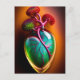 "The Heart Beats" ist eine moderne und künstlerische Postkarte mit einem farbenfrohen anatomisch aquamarinen Glasherz mit magentafarbenen Adern. Eine Alternative vielleicht zum traditionellen Valentine, das mit AI-generierender Software erstellt wurde.