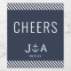 Diese personalisierten Weinetiketten verfügen über ein Ankermonogramm und Streifen auf marineblau Untergrund. Ideal für Gäste, die sich auf einer Hochzeit an der Ostküste auf dem Wasserweg vergnügen möchten.