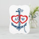 Einladungen für Hochzeiten mit Anchor, Schönheitssalon in Blau, Rot und Weiß. 2-seitige Bauweise. Personalisieren Sie sowohl die obere als auch die Rückseite mit Ihren Monogrammen, Datum, Ort, Namen und anderen Texten. Fun nautical design in blau, rot und weiß. Matching-Elemente sind verfügbar.