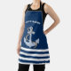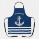 Dieses Bild zeigt einen Bootnamen und Anker auf einem marineblau-blau-weiß gestreiften Hintergrund.
