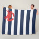 Anchor Navy Blue Stripes Red Crab Fleecedecke