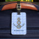 Anchor with rope illustration over waves light blue seamless background. Custom Text.