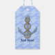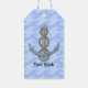 Anchor with rope illustration over waves light blue seamless background. Custom Text.