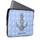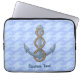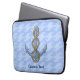 Anchor with rope illustration over waves light blue seamless background. Custom Text.