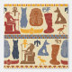 Fügen Sie jedem Zimmer eine historische Touch mit diesem antiken ägyptischen Thema Schale und Stock Tapete. Inspiriert von den Kunstwerken, die in den Pyramiden Ägyptens entdeckt wurden, zeigt dieses Selbstknüppelpapier meine Illustrationen eines Sortiments ägyptischer Motive wie den Gott Thoth, die Katzengöttin Bastet, den heiligen Käfer, das Lebenszeichen, Königin Nefertiti, König Tut, Anubis und vieles mehr. Diese Grafiken in Blau, Rot, Braun, Gelb und Orange sind Set vor einem sandfarbenen Hintergrund.