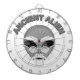 Eine uralte Alien steht in den Halbtönen. Originelles Cartoon-Design.