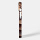 Ein wunderschönes, braunes iPhone 14 Gehäuse mit einer Papierausschnitt-Szene mit antiken chinesischen Gebäude, Bäumen, Bergen und Seen.
