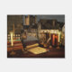 "Ein surreales 3D-Stück auf Perspektive erstellt in Vue. Im Hintergrund befindet sich eine ruhige, mittelalterliche Stadtstraße am späten Nachmittag, wo das warme Licht der untergehenden Sonne durch die an den Wänden brennenden Lampen noch verstärkt wird. Holzhäuser und Gasthäuser mit Strohdächern liegen an der Straße, und hinter ihnen ist ein großer, viereckiger Turm mit vier Eckturmen zu sehen. Diese großflächige Szene verschmilzt in ein kleineres Vordergrundleben, in dem ein Schreibtisch voller Bücher zu sehen ist. Die Bücher sind so groß wie die Steinmauer und die Häuser, gegen die sie sich lehnen, und die Kopfsteinpflasterstraße verblasst sanft in das Holzkorn des Tisches. Neben den Büchern sitzen auf dem Schreibtisch ein Federstift und eine Tintenflasche, ein Kompass, ein Stundenglas, eine montierte Lupe und ein Pergamentbrief mit einem offiziellen Siegel. Zwei Kerzen beleuchten den Schreibtisch mit einem sanften Licht, während die Lampen die Straße beleuchten."