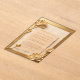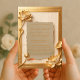 Feiern Sie Ihre Liebe mit antiker Eleganz durch die ägyptische Acrylhochzeit, inspiriert von der reichen Geschichte des antiken Ägypten. Diese Einladung, die auf einem papyrusartigen Hintergrund mit luxuriösen Goldakzenten und Lotus-Blume gestaltet wurde, verleiht Ihrem Hochzeitstag ein Gefühl von Königtum und Romantik.