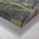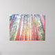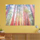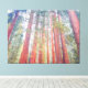 Das Bild zeigt einen flachen Blick auf einen dichten Wald mit mächtigen Sequoia-Bäumen. Die Bäume haben eine dicke, rötlich-braune Rinde und erstrecken sich nach oben und füllen den Rahmen. Auf einigen Bäumen und im Hintergrund ist grünes Blattwerk zu sehen, das einen Kontrast zu den rötlichen Stämmen bildet. Der Himmel ist teilweise durch die Baumkronen sichtbar und erscheint hell und diffundiert.
