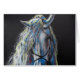 Die flüssige Mähne markiert den unmissverständlichen Blick eines Dressagepferds! Bunter Pastell auf Schwarzem.