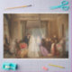 In diesem Design ist ein Gemälde des englischen Malers George Elgar Hicks aus der Viktorianischen Zeit (1824-1914) zu sehen. Es zeigt eine Ehefrau, die nach einer Hochzeitsfeier in ihr neues Ehemännerhaus einzieht. Die Braut trägt ein langes weißes Kleid im traditionellen Stil. Der Bräutigam trägt einen traditionellen morgendlichen Anzug und eine Krawatte, und seine Hand wird auf einen stylischen roten Stuhl gelegt, der wie ein Thron aussieht, der seine Ehefrau zum Sitzen bringt. Es gibt viele Familienmitglieder, die mit dem Ehemann und der Ehefrau feiern, darunter jüngere und ältere Verwandte. Jeder trägt seine besten Kleider für diesen besondere Anlass. Es ist ein fröhlicher Moment für das glückliche Paar, den sie für die Erholung ihres Lebens schätzen werden. Das Originalwerk wurde 1862 gemalt.