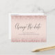 Teilen Sie uns mit, welche Informationen für ein Ereignis, das mit einer Rose--Goldpinke-Glitzer-Postkarte mit einem spitzen modernen Kalligraphieskript-Schriftart verschoben, verschoben, geändert oder verzögert wurde, aktualisiert wurden. Die Textfarbe kann bearbeitet werden, indem Sie auf "Weiter anpassen" klicken, oder das Design auf eine Karte mit einem Briefumschlag übertragen. Weitere Informationen finden Sie im Paper Traube Zazzle Designer Shop, oder kontaktieren Sie den Designer für weitere Anpassungen.