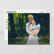 Moderne trendige Schrift ändern das Datum Hochzeitspause Neue Hochzeitstermin Paar Foto Postkarte