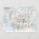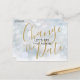 Diese elegante Änderung der Datumskarte mit Goldschrift kann mit Ihrer Aufschiebungsinformation personalisiert werden. Auf der Rückseite finden Sie weitere Informationen, einschließlich Ihrer Website, mit Ihrer Rücksendeadresse und Platz für die Adresse Ihres Empfängers. Ideal für Hochzeiten, Brautpartys, Babyduschen, Taufen, Verlobungsfeiern, Jubiläumsfeiern, Geburtstagsfeiern und andere besondere Winterveranstaltungen! Entwickelt von Thisisnotme©