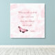 Modern, einfach und wahr. "Wenn Wörter sowohl wahr als auch freundlich sind, können sie die Welt verändern", zitiert Buddha auf hübschem rosa Aquarellfarbenhintergrund mit rosa Schmetterling