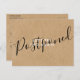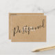 Diese stilvolle rustikale Kraftwechsel der Datumskarte kann mit Ihrer Aufschiebungsinformation personalisiert werden. Auf der Rückseite finden Sie weitere Informationen, einschließlich Ihrer Website, mit Ihrer Rücksendeadresse und Platz für die Adresse Ihres Empfängers. Ideal für Hochzeiten, Brautpartys, Babyduschen, Taufen, Verlobungsfeiern, Jubiläumsfeiern, Abschlüsse, Geburtstagsfeiern und andere besondere Veranstaltungen das ganze Jahr über! Entwickelt von Thisisnotme©