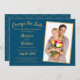 Fügen Sie Ihr Foto zu diesem Ozean blau mit goldenen Buchstaben ändern Sie die Datumskarte. Lass den Gästen wissen, dass die Hochzeit verschoben wurde, mit dieser Änderung das Datum flache Einladungskarte. Fügen Sie das neue Save the Date hinzu. Passen Sie es an, um den Hintergrund zu verändern. Auf der Rückseite der Save the Date Karte befindet sich ein Diamantmuster. Unvorhergesehene Umstände mit einer Pandemie, oder eine persönliche Frage des Lebens, dies ist die ideale Karte, um Ihre Gäste zu schicken. Moderne, einfache und minimalistisch gestaltete Karte. Kontaktieren Sie Sandy unter admin@giftsyoutreasure.com für ein Set oder ein Design für Sie.