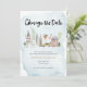 Informieren Sie Ihren Gast über den "Wechsel des Datums" Ihrer Hochzeit mit diesem schönen Aquarell-Design von New York City.