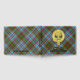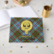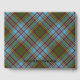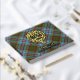Clan Anderson Wappen Abzeichen umgeben von einem Gurt und Schnallen über Tartan Hintergrund. Benutzerdefinierter Vorder-, Rücken- und Rückentext.